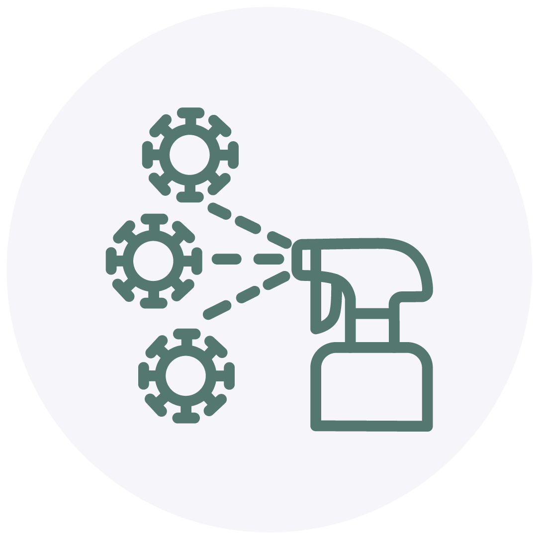 Aplicación de sanitizantes para eliminación de la carga de agentes patógenos, tales como microbios, virus y hongos.